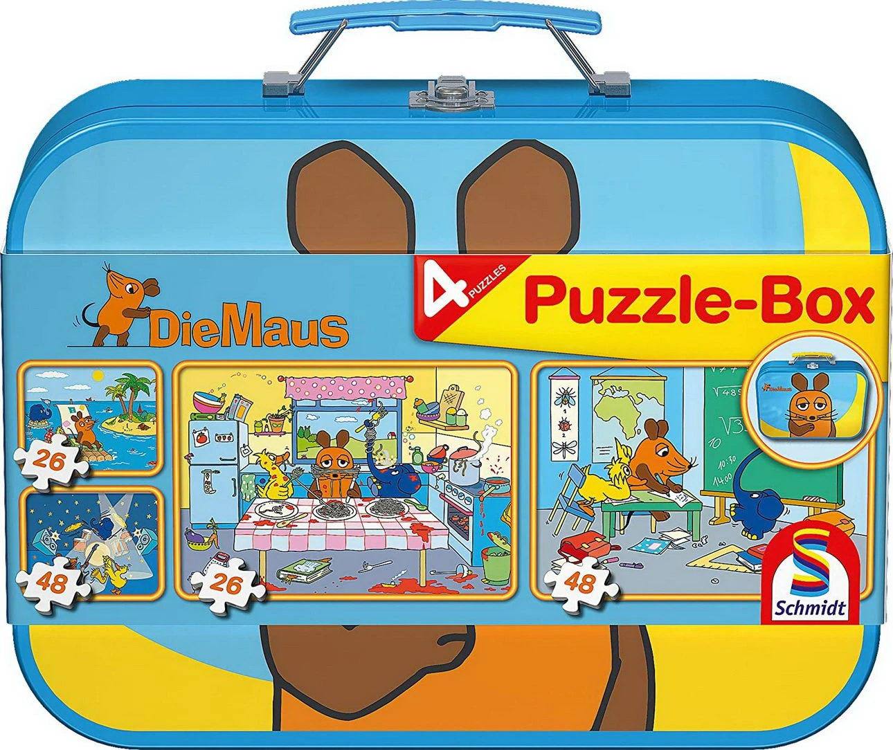 Puzzle-Box – 4 Die Sendung mit der Maus Puzzle im Metallkoffer – (Schmidt Spiele 55597)